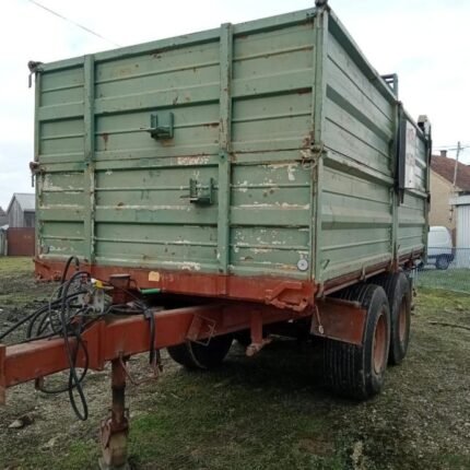 La remorque ITAS 15T est une benne robuste à double basculement latéral, parfaitement adaptée au transport de matériaux lourds sur les exploitations agricoles ou les chantiers. Ce modèle a été entièrement sablé, repeint et verni, garantissant un excellent état général et une longue durée de vie. Son système de freinage pneumatique et ses 8 pneus en parfait état assurent une conduite sûre et stable.